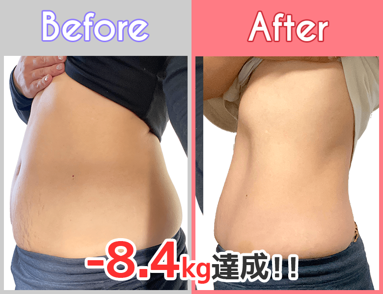 開始前:62kg 開始後:53.6kg ダイエット効果:8.4kg |